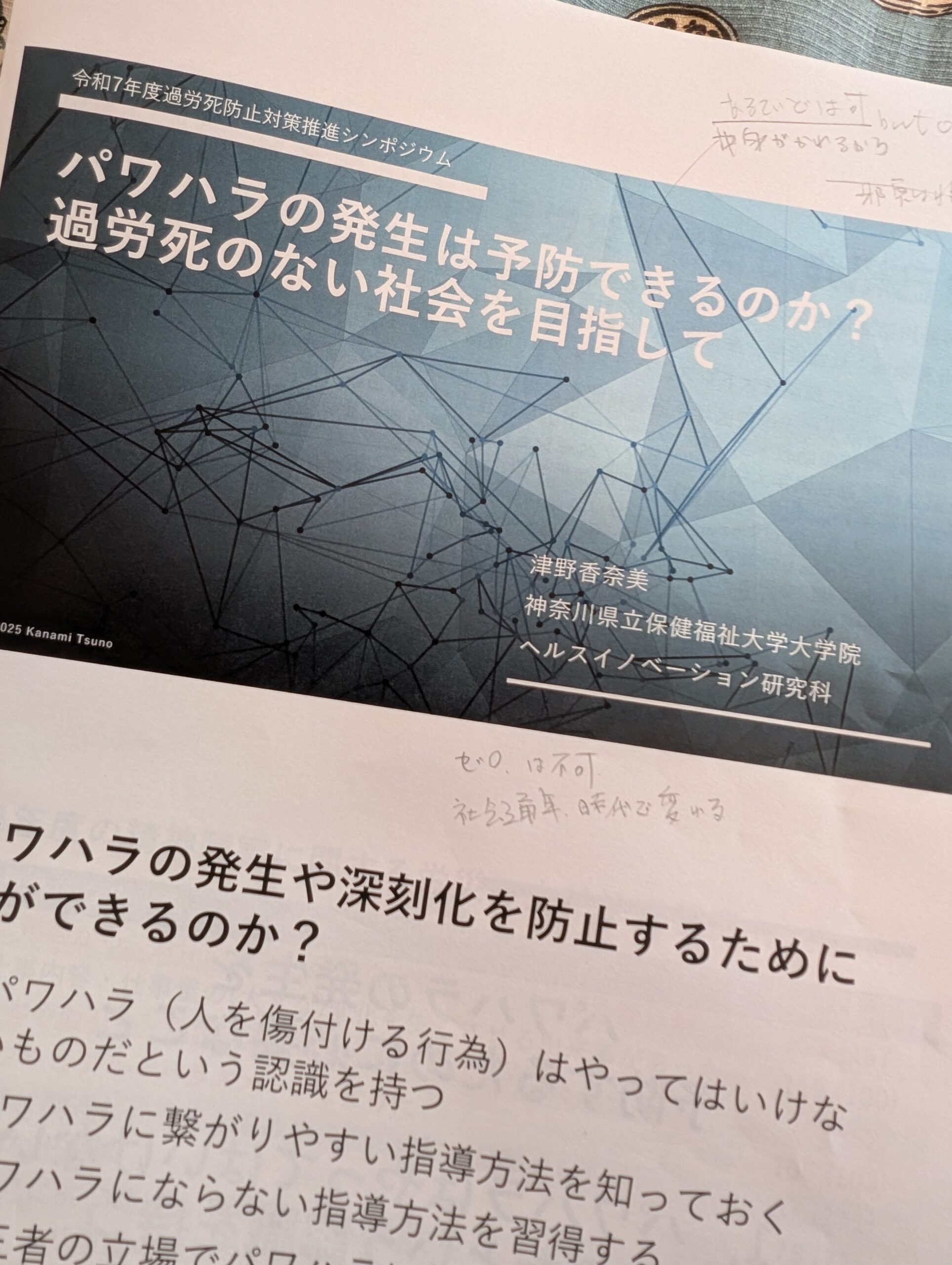 さて、シンポジウムの内容ですが、今日は基調講演「パワハラの発生は予防できるのか?過労死のない社会を目指して」のことを書きたいと思います。